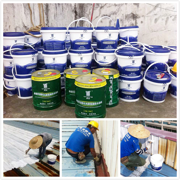 青龍公司中山經(jīng)銷商張總成功承接了這一防水補(bǔ)漏工程。經(jīng)過實(shí)地仔細(xì)檢查,并經(jīng)與客戶詳細(xì)協(xié)商,最后敲定采用青龍公司CQ103丙烯酸酯高級(jí)彈性防水涂料和CQ104單組份濕固化純聚氨酯防水涂料的組合補(bǔ)漏方案。青龍CQ103丙烯酸酯防水涂料具有良好的耐老化、延伸性、粘結(jié)性、成膜性及耐高溫性,因此非常適合在鐵皮房屋頂作整體涂刷;而屋頂排水溝則采用CQ104單組份濕固化純聚氨酯防水涂料。