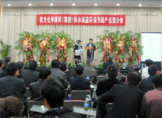 10月28日下午,青龍化學建材(集團)公司防水保溫環(huán)保節(jié)能產(chǎn)品推介會在云南昆明舉行,公司董事長宋敦清先生出席會議并作重要講話,公司常務副總陳經(jīng)富先生主持會議,技術總工徐新生先生作新型防水材料與EVB保溫隔熱產(chǎn)品技術講解,來自省內的各建筑的項目經(jīng)理150余人聽取了講座。