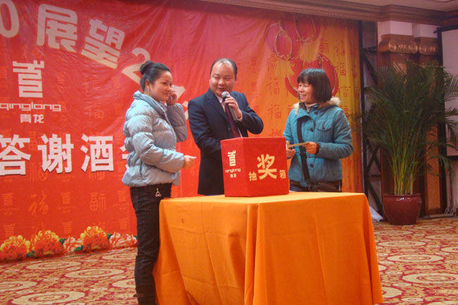 本次青龍答謝酒會(huì)的主題是:"感恩2010,展望2011"。南寧市隆安縣華僑經(jīng)濟(jì)管理區(qū)領(lǐng)導(dǎo)、南寧市建委墻改辦領(lǐng)導(dǎo)、設(shè)計(jì)院領(lǐng)導(dǎo)、檢測(cè)中心領(lǐng)導(dǎo)、各房地產(chǎn)建筑公司領(lǐng)導(dǎo)及廣西青龍代理商和員工200余人出席了本次酒會(huì)。
