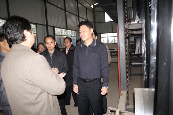 圖為隆安縣縣長(zhǎng)陳竑(右)視察廣西青龍車間