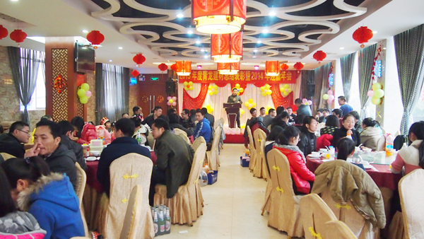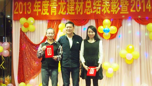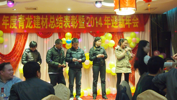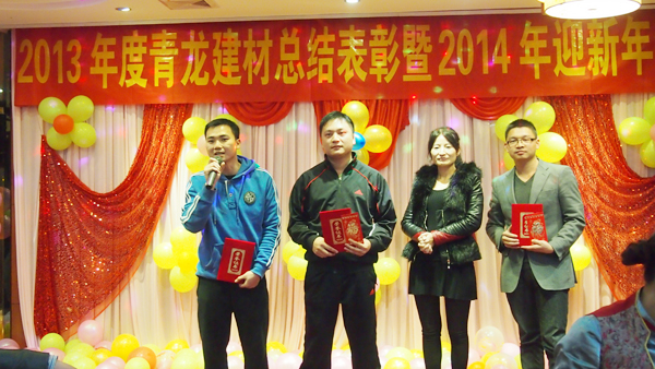 晚宴上,青龍廣西分公司韋流武先生代表集團董事長宋總致晚宴開幕辭并送上新年祝福。韋經(jīng)理總結(jié)了2013年青龍廣西化學(xué)建材的發(fā)展歷程,肯定了2013年所取得的成績,并對2014年寄予了美好展望。之后對2013年青龍廣西化學(xué)建材表現(xiàn)優(yōu)異的員工進行表彰,鼓勵大家向他們學(xué)習(xí),繼續(xù)為生產(chǎn)中國較好的防水材料而奮斗。