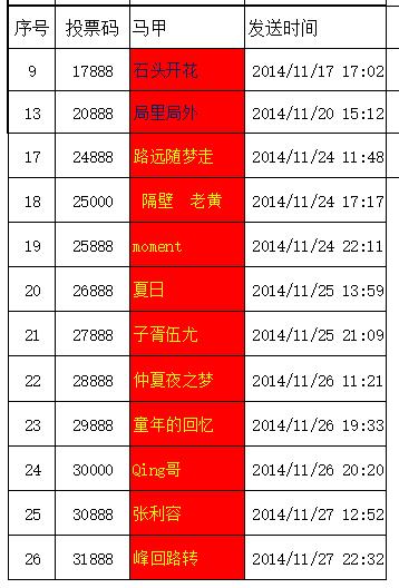 第二批投中并中獎(jiǎng)名單公布如下(包括上期未及時(shí)提交信息):石頭開花、局里局外、路遠(yuǎn)隨夢走、隔壁 老黃、moment、夏日、子胥伍尤、仲夏夜之夢、童年的回憶、Qing哥、張利容、峰回路轉(zhuǎn)。恭喜他們,也請大家繼續(xù)支持青龍,只為青龍投票!