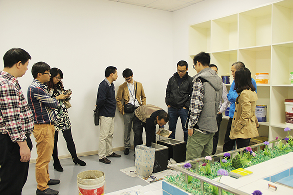 碧桂園考察團現(xiàn)場觀察防水材料施工