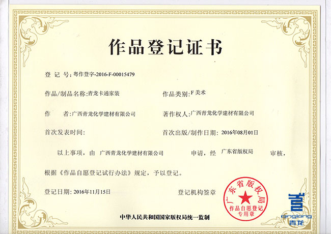 近日,青龍卡通家裝和工裝(粵作登字-2016-F-00015479和粵作登字-2016-F-00015480)順利通過廣東省版權(quán)局審核,予以登記。自2016年11月15日起,青龍卡通家裝/工裝設(shè)計(jì),將受法律保護(hù),版權(quán)所有,侵權(quán)必究。