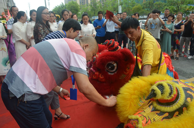 開業(yè)當(dāng)天,現(xiàn)場(chǎng)高端氣派,獅舞歡騰,鑼鼓喧天,禮炮齊鳴,喜氣洋洋,助陣了開業(yè)慶典。董老板親自為獅子點(diǎn)睛并致歡迎辭,對(duì)湖北商會(huì)、青龍公司及清遠(yuǎn)防水同行的支持表示感謝;青龍宋董事長(zhǎng)致祝賀辭,給予高度評(píng)價(jià)。剪彩儀式上,青龍董事長(zhǎng)宋敦清、營(yíng)銷總監(jiān)賀金龍以及湖北商會(huì)的多們領(lǐng)導(dǎo)、清遠(yuǎn)的相關(guān)領(lǐng)導(dǎo)等嘉賓上臺(tái)為新店開業(yè)進(jìn)行剪彩,在場(chǎng)來自各方的嘉賓們共同見證這個(gè)喜慶的歷史時(shí)刻。