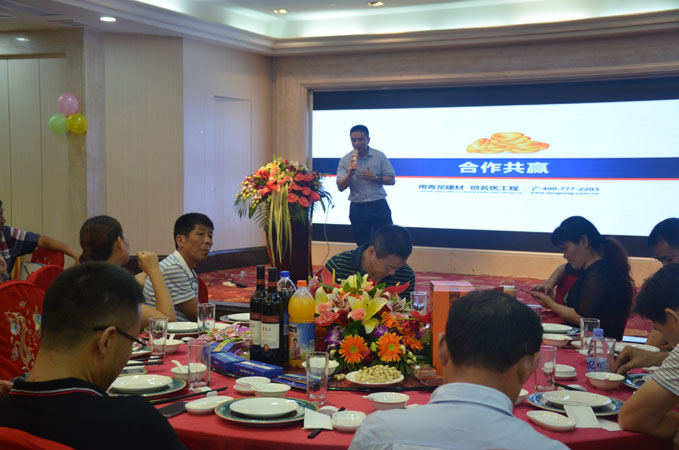 在答謝午宴上,賓客滿席,董老板、青龍營(yíng)銷總監(jiān)賀總、青龍家裝營(yíng)銷于總、青龍質(zhì)量總監(jiān)張總和專賣店技術(shù)工程師周工分別上臺(tái)進(jìn)行了分享。午宴中還穿插了精彩的文藝節(jié)目和豐富的活動(dòng),將現(xiàn)場(chǎng)氛圍推向高潮。廣大來賓在一片歡聲笑語中,不僅學(xué)習(xí)了更多的創(chuàng)業(yè)經(jīng)驗(yàn)和防水知識(shí),也拓展了人際網(wǎng)絡(luò),愉快地度過了這個(gè)美好的正午。