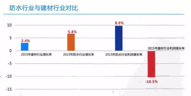 ? 我國(guó)建筑行業(yè)巨大的容量,為防水行業(yè)發(fā)展提供了強(qiáng)大的市場(chǎng)空間,每年防水施工面積超過(guò)15億平方米,是建材行業(yè)發(fā)展快的行業(yè);