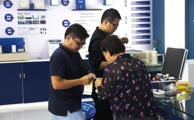 青龍博士團隊防水工程師高東偉,詳細講解了青龍339定制防水系統(tǒng)及核心理念、特色維修補漏產(chǎn)品,讓客人對青龍家居防水產(chǎn)品有了總體的了解。同時通過和市場上同類防水材料的對比,不僅增強了客人對公司防水材料、青龍品牌的信任和信心,也提升了客人防水理論水平和解決滲漏問題的實踐能力。