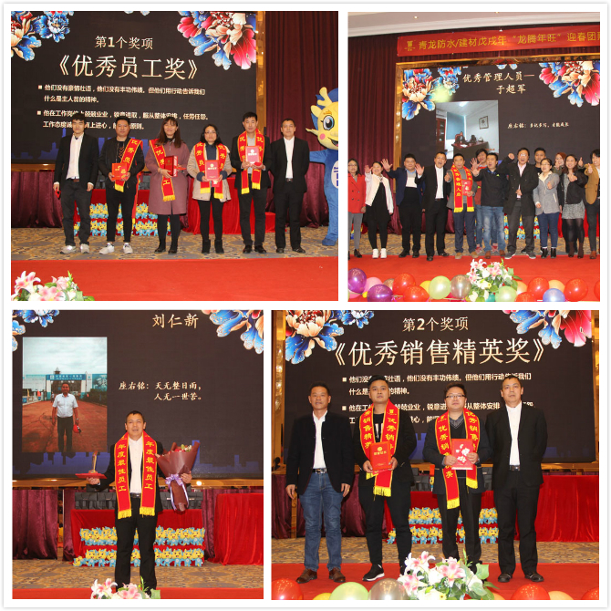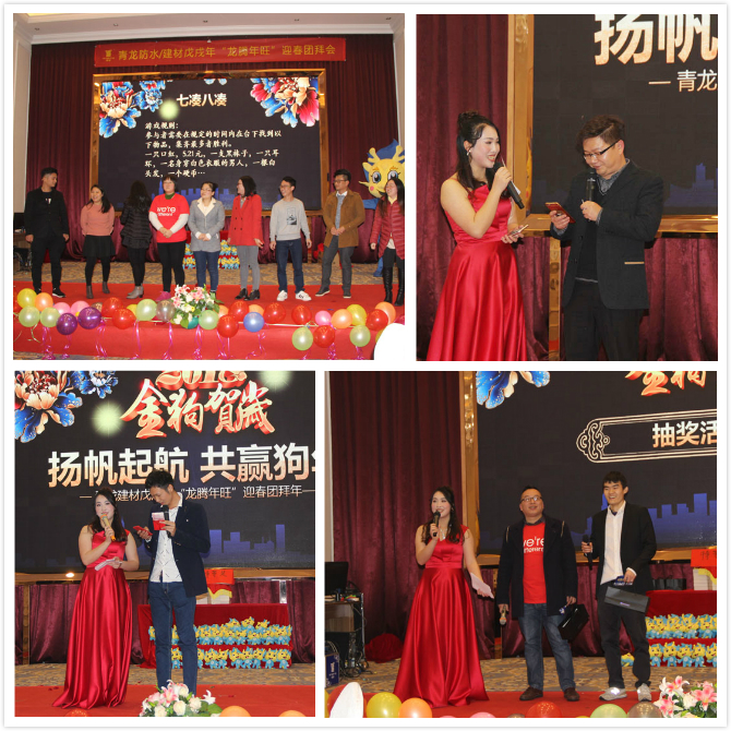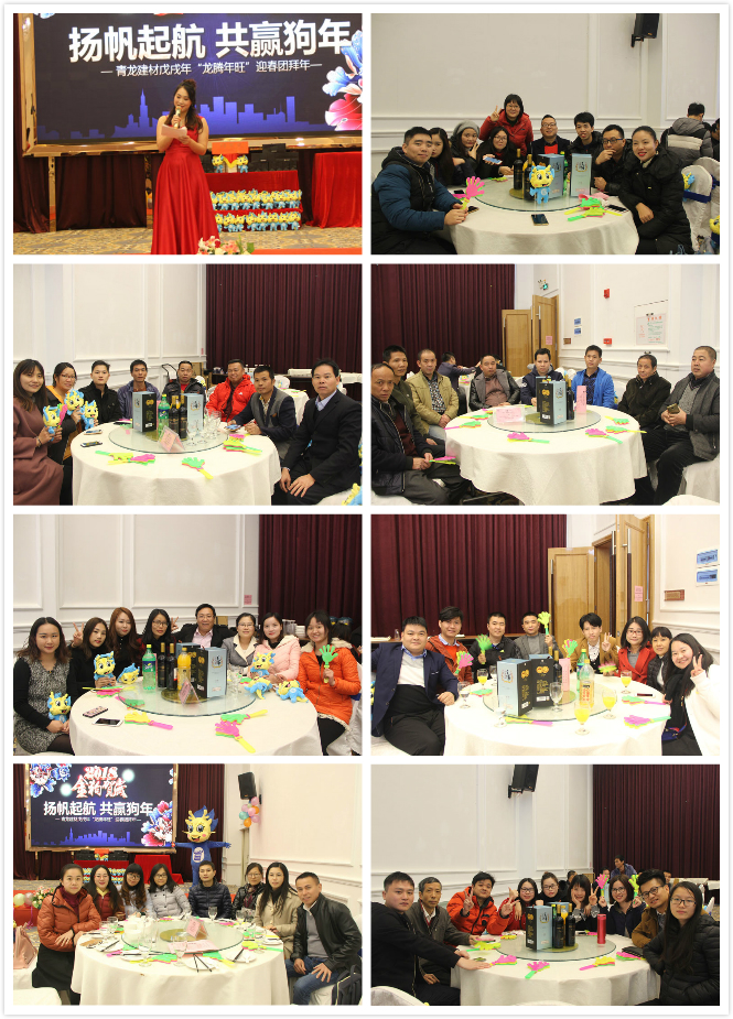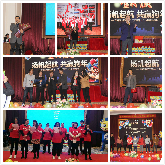 2018年2月7日,青龍建材中山公司2017年年終總結(jié)表彰大會(huì)及2018迎新年會(huì)在中山維出納國(guó)際酒店隆重舉行,青龍董事長(zhǎng)宋敦清、營(yíng)銷總監(jiān)賀金龍、招商總監(jiān)周炳陽(yáng)、家裝事業(yè)部總經(jīng)理于超軍、質(zhì)量總監(jiān)張科、中山工廠廠長(zhǎng)劉文學(xué)、方文軍以及青龍中山公司、港口工廠、三角工廠全體員工參加了盛會(huì)。晚會(huì)還現(xiàn)場(chǎng)連線了青龍海南環(huán)球100GRC工廠和馬來(lái)西亞森林城市防水工地。晚會(huì)繼往開來(lái),精彩紛呈,其樂融融,取得了圓滿的成功!