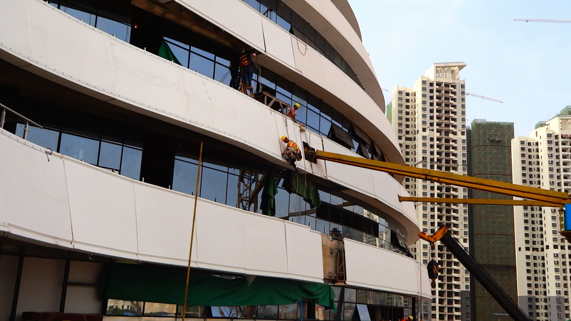 青龍公司作為國(guó)內(nèi)GRC領(lǐng)域的知名企業(yè),承接了新媒體中心三座主體結(jié)構(gòu)的雙曲面外墻板項(xiàng)目。由于所有的面板沒(méi)有一片完全相同,不僅要經(jīng)受高空風(fēng)雨的侵蝕,相鄰兩塊更要緊密榫合,天衣無(wú)縫,并在整體上形成流線(xiàn)性美感,因此需要制作大量的模具,工程極為繁瑣。但青龍GRC團(tuán)隊(duì)克服重重困難,從圖紙深化設(shè)計(jì)、彩色GRC選材、造型產(chǎn)品生產(chǎn)到安裝施工等一系列工序中都做到極致,讓甲方和監(jiān)理都非常滿(mǎn)意。
