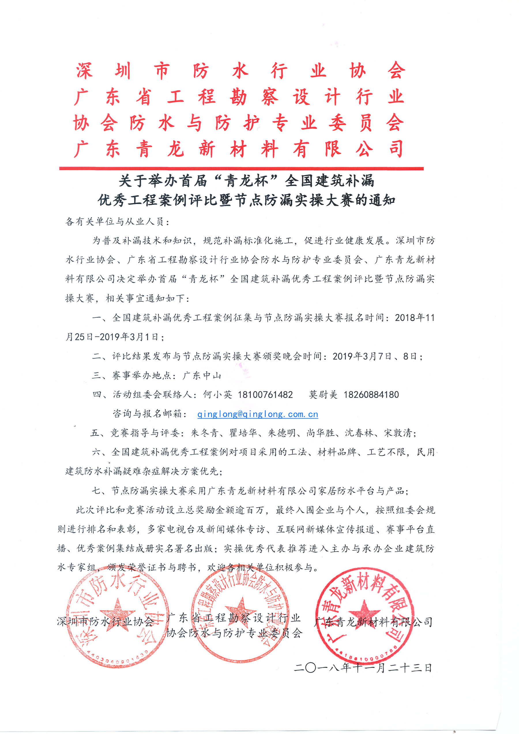 五、所有參賽者還可免費參加第二屆建筑修繕補漏高峰論壇暨青龍防水促銷狂歡節(jié)。