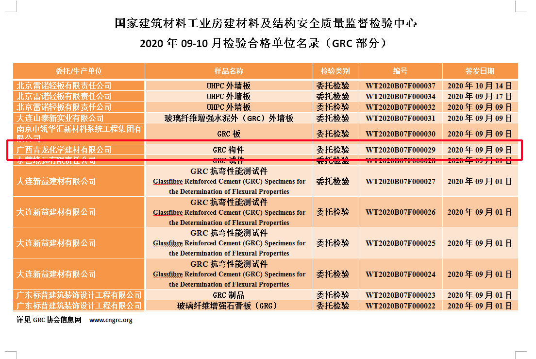 此次我司GRC構(gòu)件成功通過國家質(zhì)量監(jiān)督檢驗中心檢測,是業(yè)界及國家對我司技術(shù)、管理、質(zhì)量提升與創(chuàng)新的充分肯定;青龍產(chǎn)品質(zhì)量是杠杠滴!23年的老品牌,放心的好品牌!