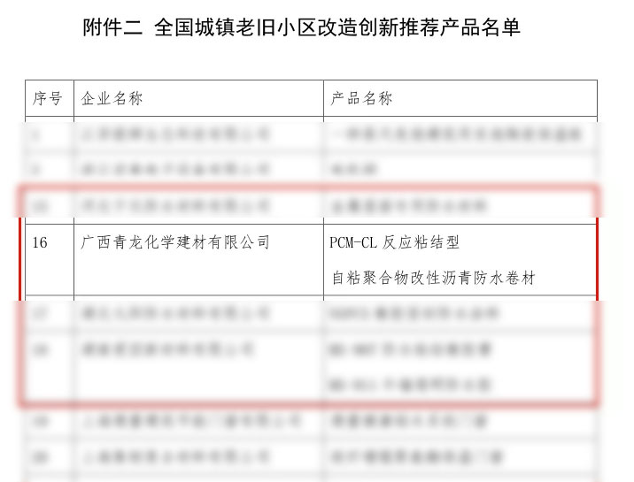 喜訊丨青龍PCM防水卷材入選全國城鎮(zhèn)老舊小區(qū)改造創(chuàng)新產(chǎn)品推薦名單