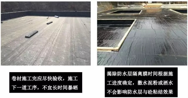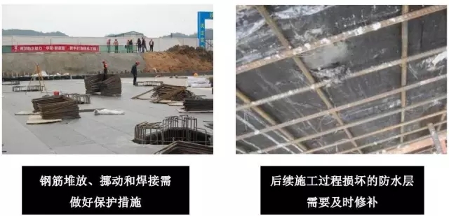 因有細(xì)石砼對(duì)防水層的保護(hù),支模、捆扎鋼筋(焊接)等工序可以有效的避免做法二中防水層的磕破、穿刺、熔穿等。