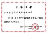 青龍廣西公司誠(chéng)信守約,榮獲2014年度廣西壯族自治區(qū)“守合同重信用企業(yè)”