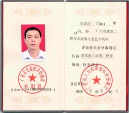 熱烈祝賀公司董事長(zhǎng)宋敦清成功獲得“建筑施工高級(jí)工程師”資格