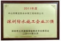 青龍防水補強榮獲“深圳建筑防水企業(yè)20強”, 隔熱保溫防水一體化材料全國領先