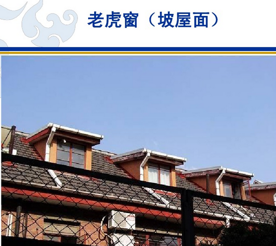 17、老虎窗又稱為老虎天窗,是指一種開在屋頂上的天窗。也就是在斜屋面上凸出的窗,用作房屋頂部的采光和通風(fēng)。