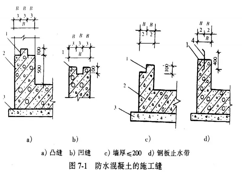 2、混凝土結(jié)構(gòu)的施工縫也是極易發(fā)生滲水的位。防止施工縫部位滲水可采取以下措施:首先施工縫應(yīng)按規(guī)定位置留設(shè),防水薄弱部位及底板上不應(yīng)留設(shè)施工縫,墻板上如必須留設(shè)垂直施工縫時(shí),應(yīng)與變形縫相一致。其次施工縫的留設(shè)、清理及新舊混凝土的接漿等應(yīng)有統(tǒng)一部署,由專人認(rèn)真細(xì)致地做好。還有設(shè)計(jì)人員在確定鋼筋布置位置和墻體厚度時(shí),應(yīng)考慮方便施工,以保證工程質(zhì)量。如發(fā)現(xiàn)施工縫滲水,可采用防水堵漏技術(shù)進(jìn)行修補(bǔ)。