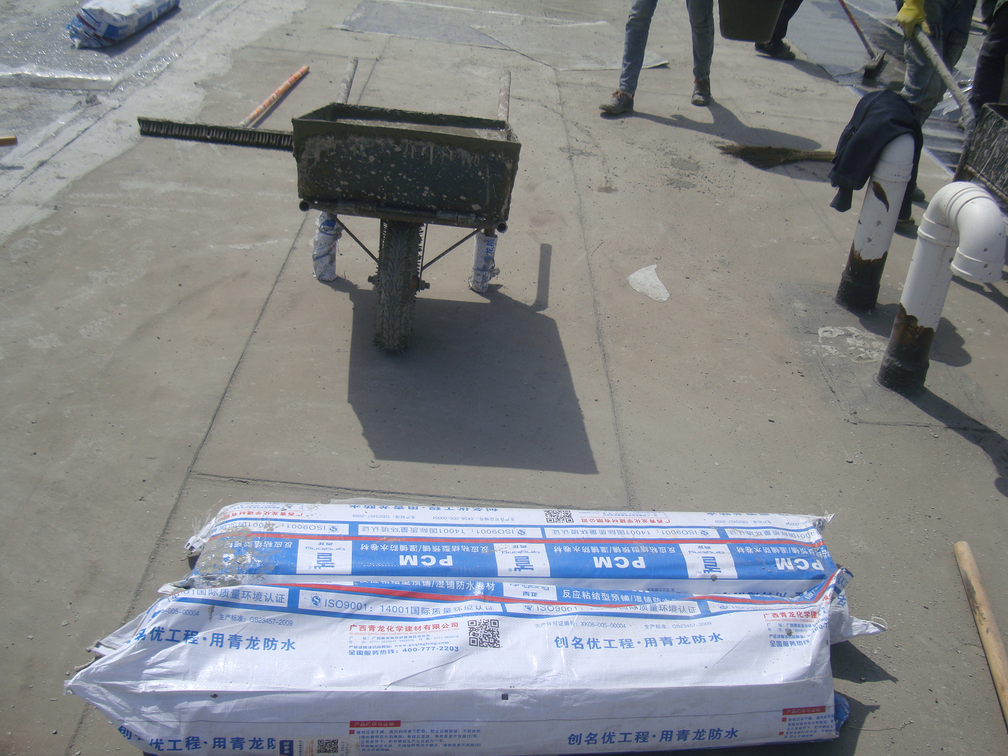 其厚度視基層平整情況而定,一般為2-3mm,過(guò)薄達(dá)不到最優(yōu)的粘結(jié)效果,過(guò)厚則水泥漿堆積而開裂,刮涂時(shí)應(yīng)注意壓實(shí),抹平。刮涂水泥漿的寬度要比卷材的寬度長(zhǎng),刮涂過(guò)程中要注意保證平整度。